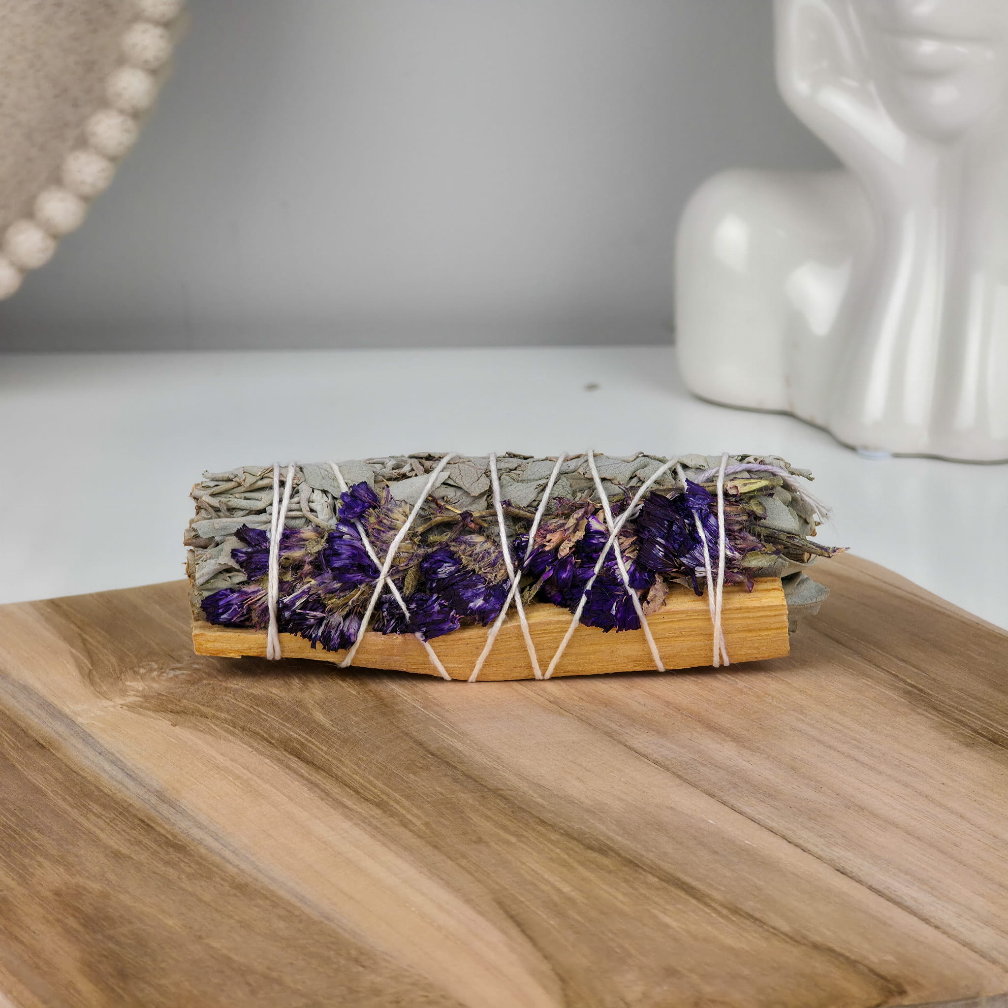 Biała szałwia od stuleci służy do oczyszczania i odnowy energetycznej, lawenda wnosi spokój i równowagę emocjonalną, a Palo Santo – „Święte Drzewo” – wzmacnia ochronę i przyciąga dobre wibracje. Razem tworzą harmonijny rytuał dla ciała, umysłu i przestrzeni.