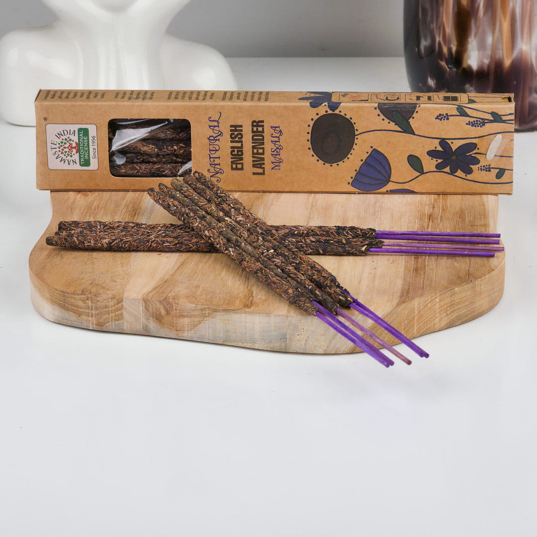 Botaniczne kadzidełka Masala Angielska Lawenda marki Namaste India to subtelna, kwiatowa kompozycja zapachowa inspirowana spokojem natury.