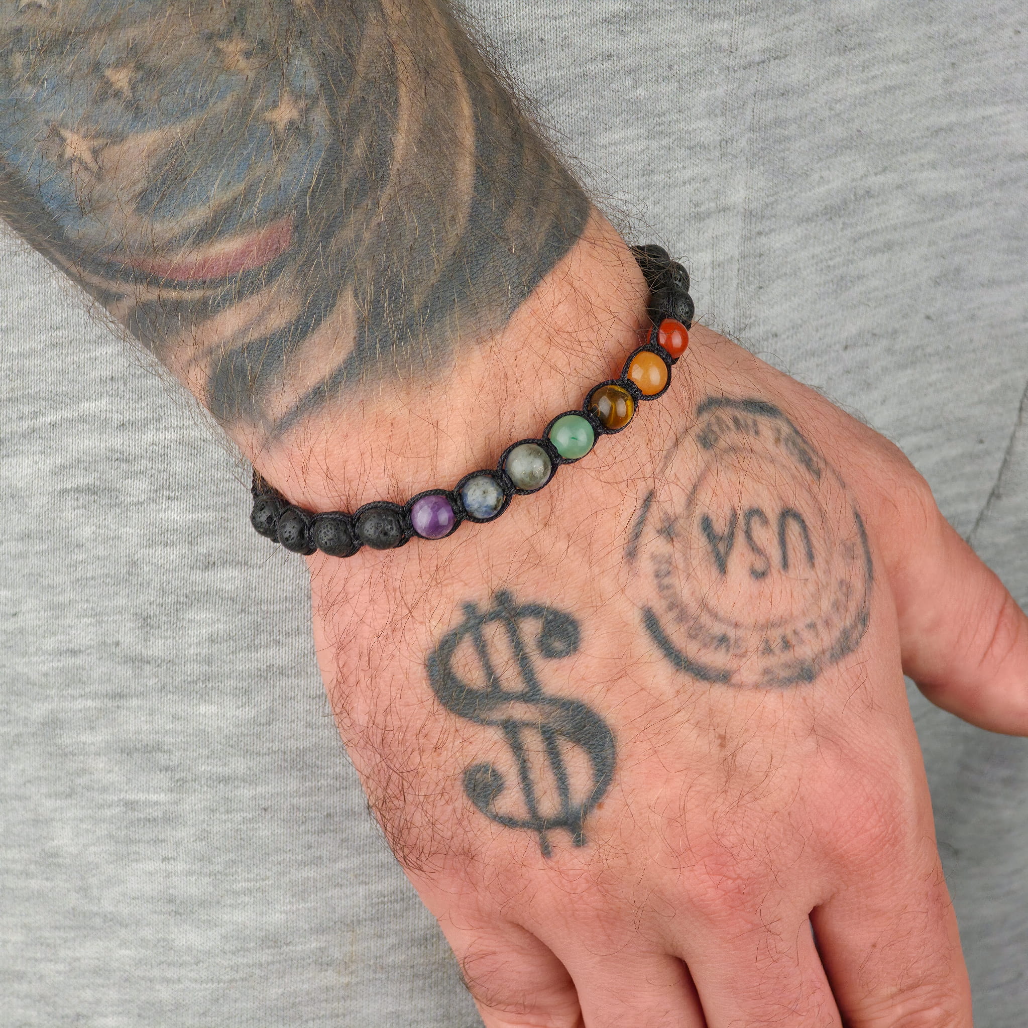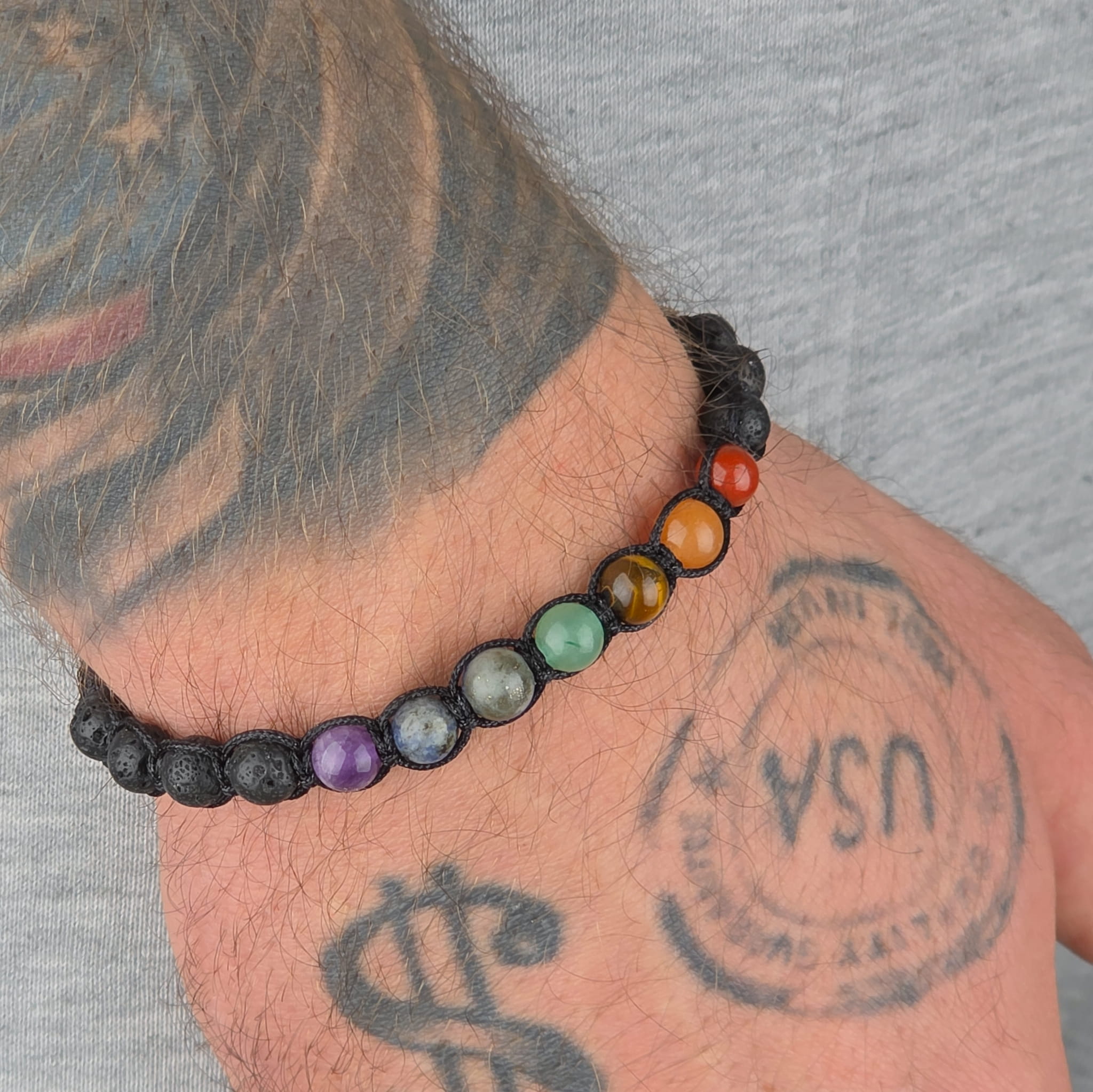 Bransoletka siedmiu czakr to talizman równowagi i wewnętrznej harmonii. Każdy kamień odpowiada jednej z czakr w ciele, wspierając przepływ energii i przywracając naturalną równowagę. Uzupełnia ją lawa wulkaniczna – kamień siły i zakorzenienia, który stabilizuje całość i wzmacnia ochronę.
