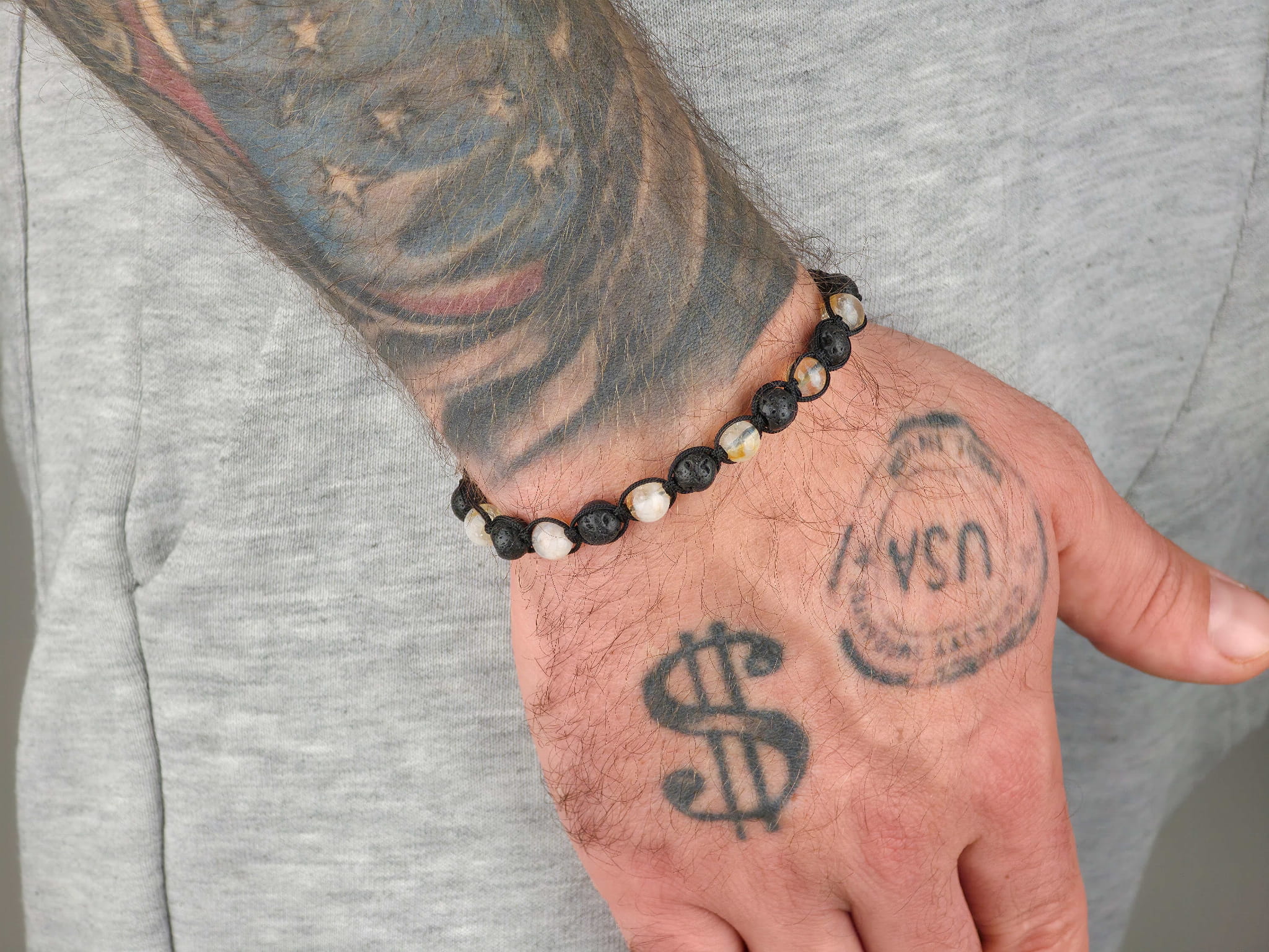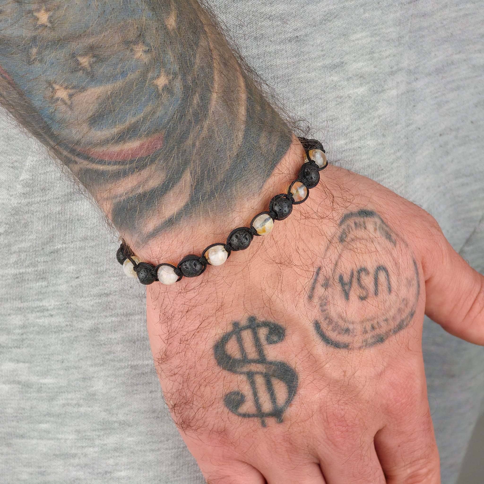 Bransoletka na regulowanym sznurku to ręcznie robiona biżuteria męska, która łączy surowość lawy z jasną energią cytrynu.