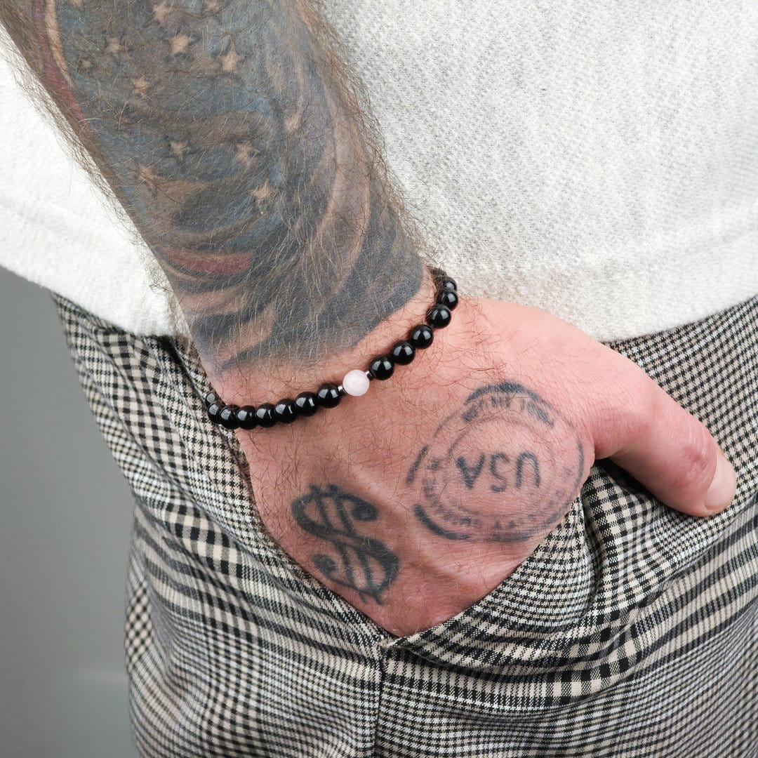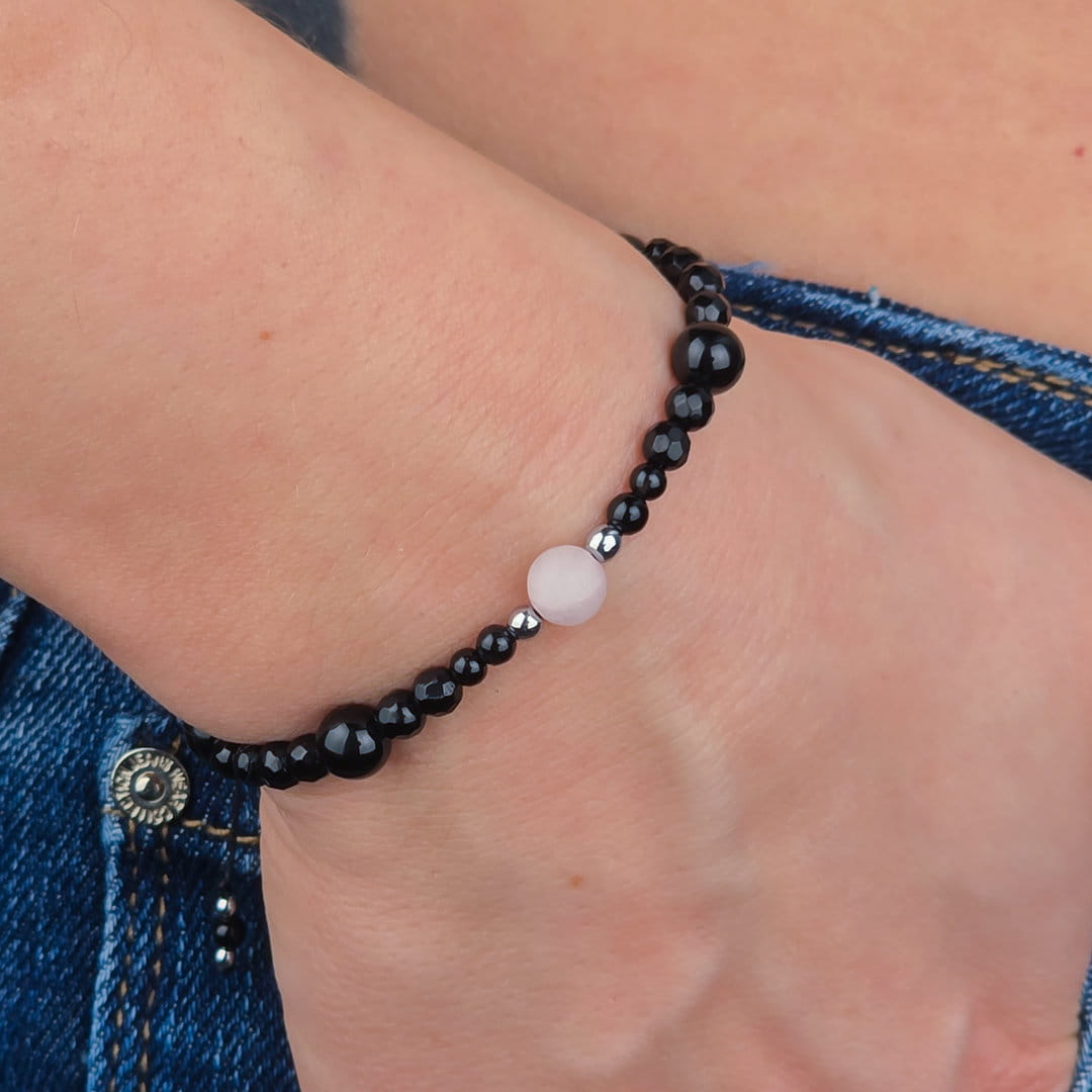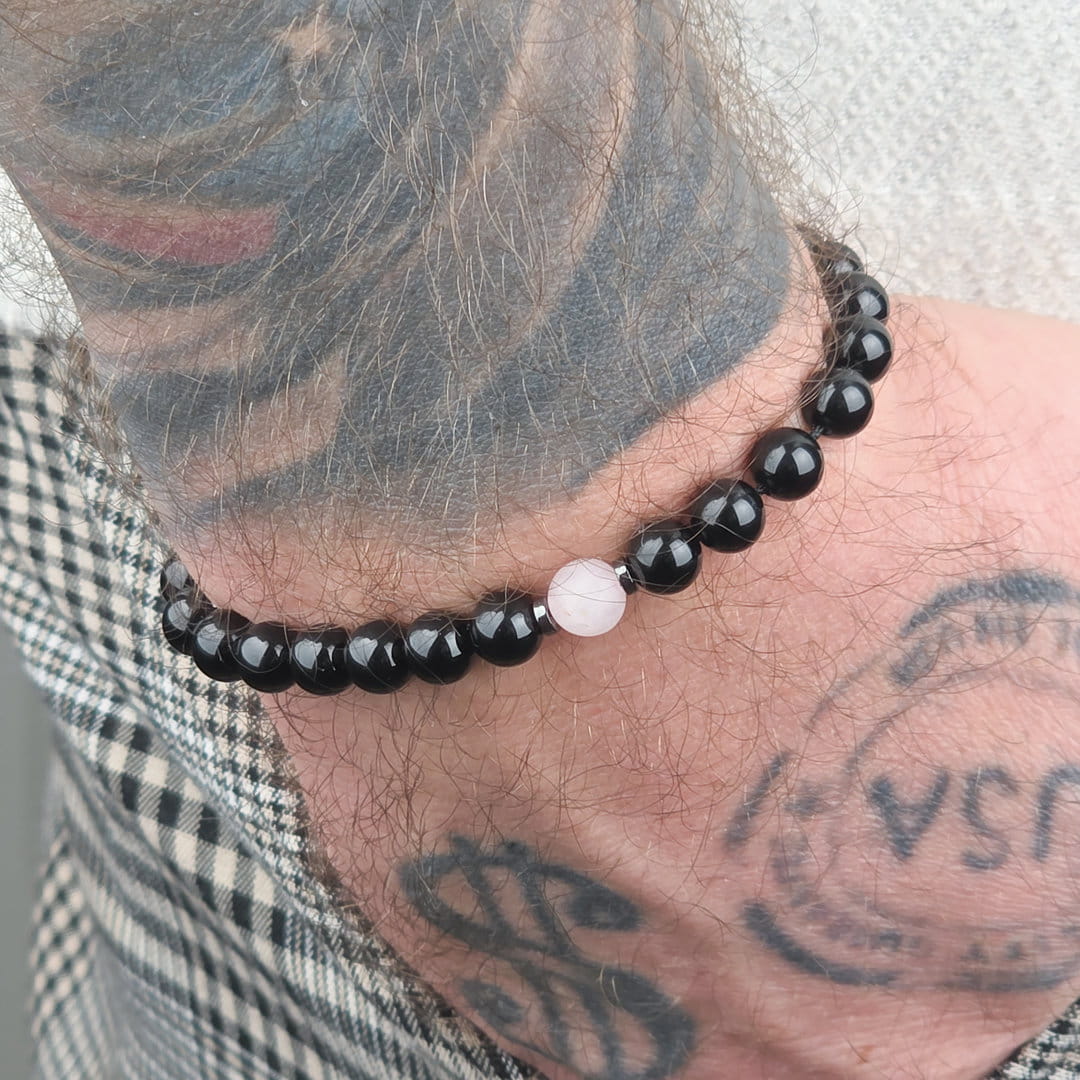 Zestaw bransoletek dla par z kwarcu różowego, onyksu i hematytu to symbol bliskości, spokoju i wzajemnego wsparcia. Delikatny akcent miłości spotyka się tu z energią ochrony i uziemienia — idealnie, gdy chcesz budować relację na stabilnym fundamencie.