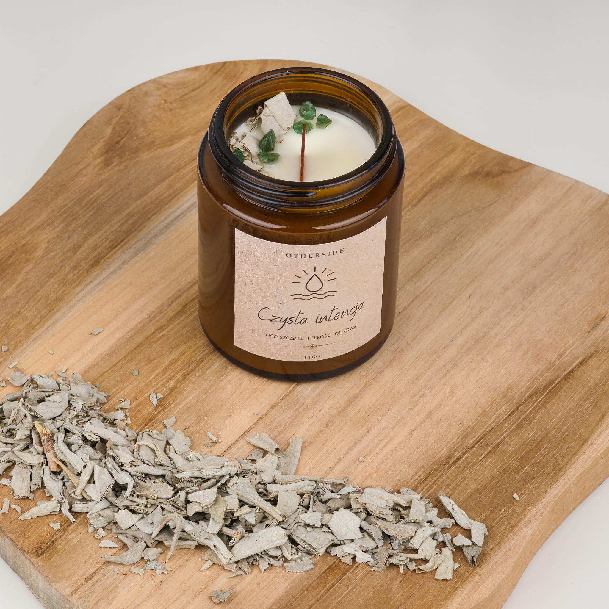Naturalna Świeca Sojowa Czysta Intencja | Kaszmir + Awenturyn + Biała Szałwia | Nowe Początki | 140g