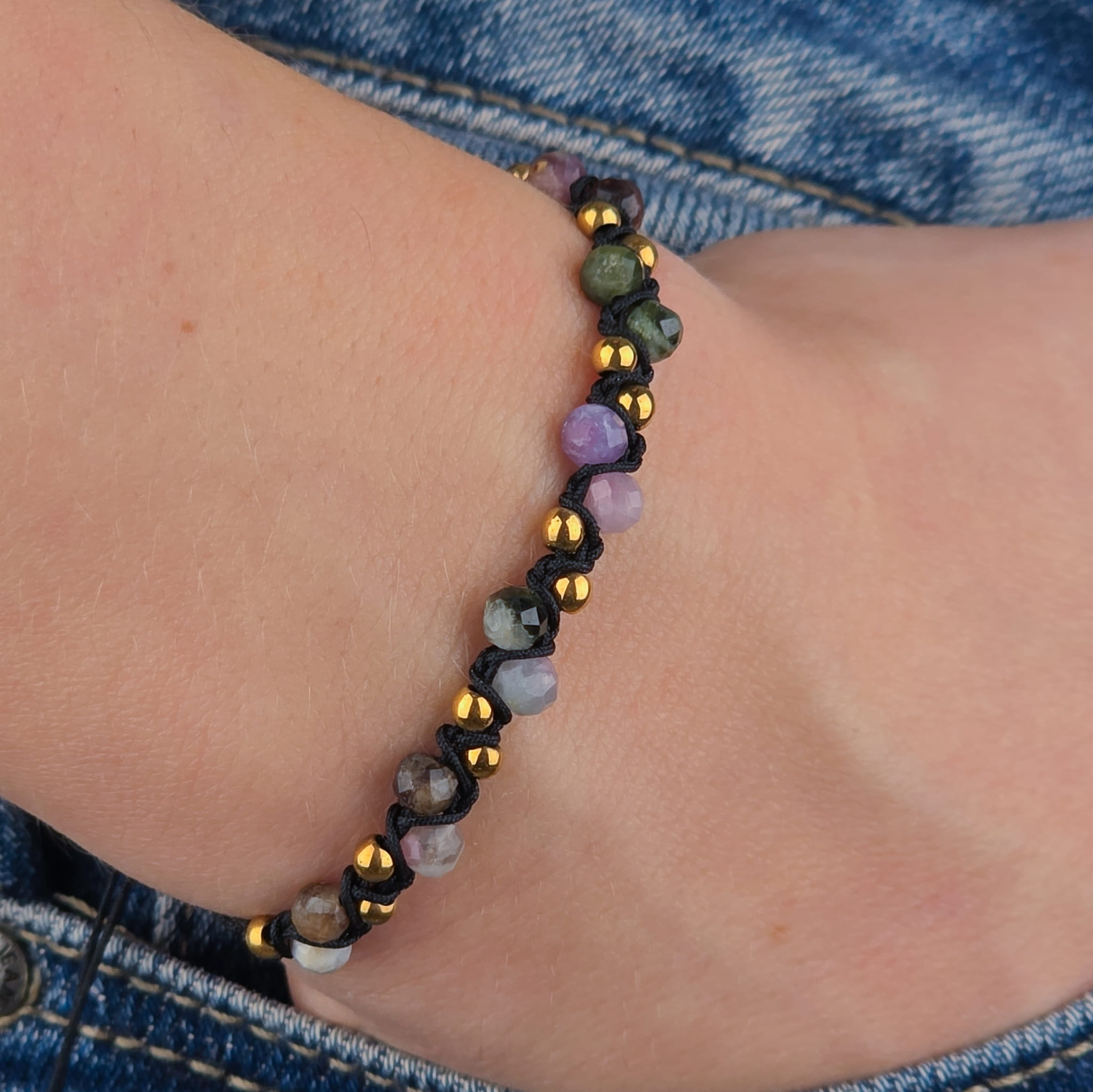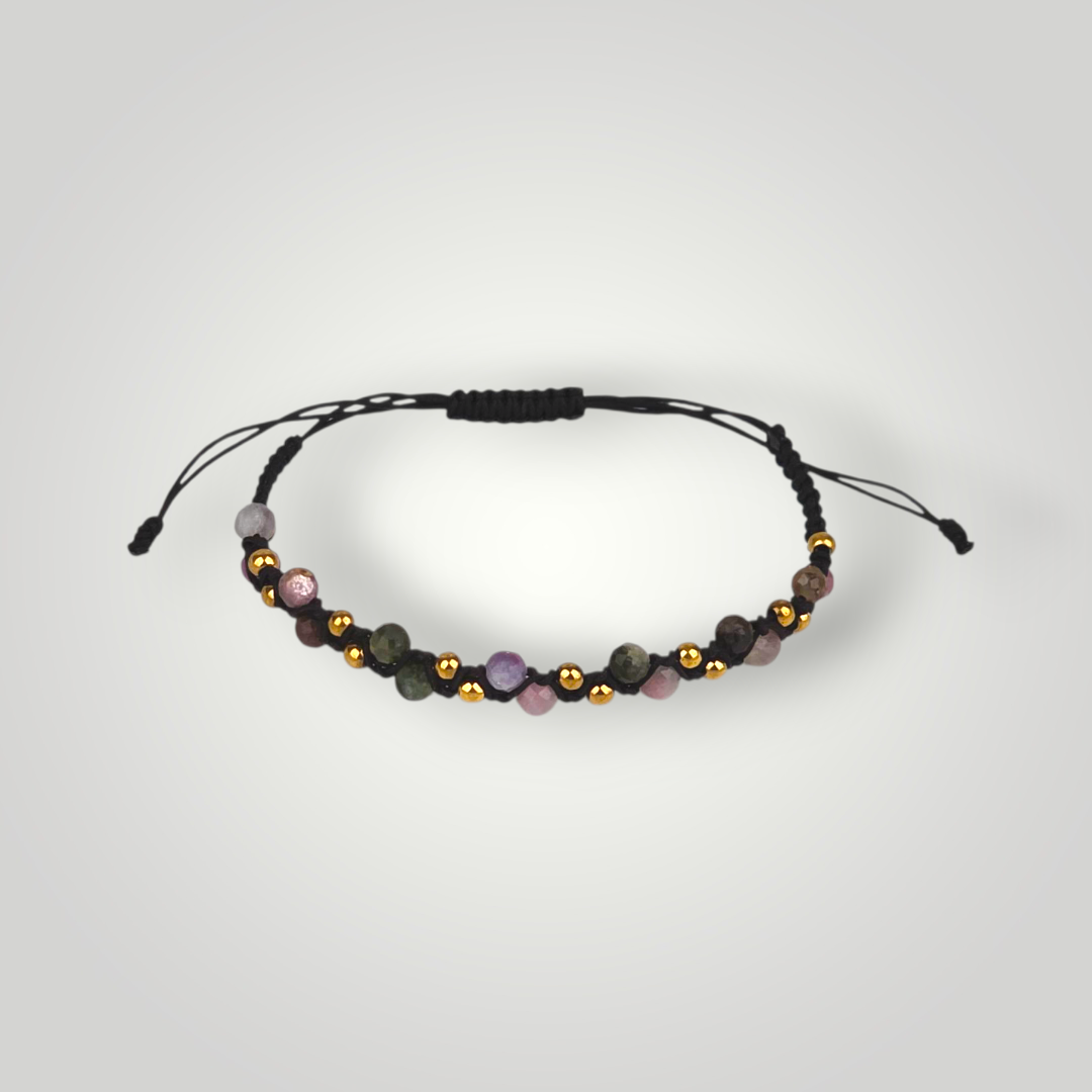 Ta bransoletka to talizman różnorodności i siły. Turmalin w wielu barwach jest kamieniem, który harmonizuje energię, wzmacnia aurę i chroni przed negatywnymi wpływami. Każdy kolor niesie inne wibracje – zielony wspiera rozwój i zdrowie, różowy otwiera serce na miłość, a czarny chroni przed złymi energiami. Razem tworzą pełnię ochrony i równowagi.