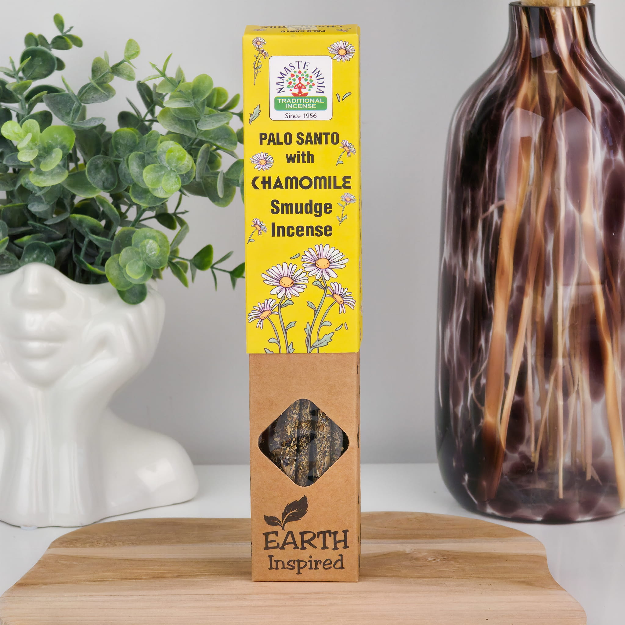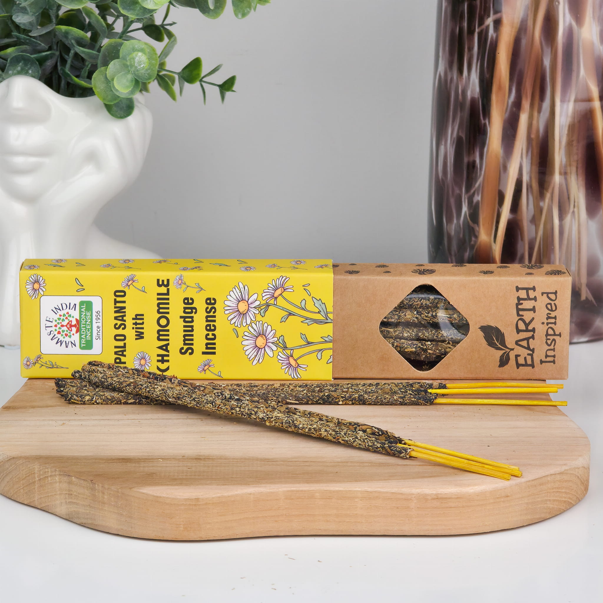 Rumianek od wieków znany jest ze swoich właściwości uspokajających – jego aromat koi nerwy, wspiera sen i sprzyja odprężeniu. W połączeniu z drzewnym, lekko żywicznym Palo Santo kadzidełko staje się narzędziem do oczyszczania przestrzeni z negatywnej energii i wprowadzania spokoju. To idealny wybór na wieczorne wyciszenie, medytację czy domowe rytuały.