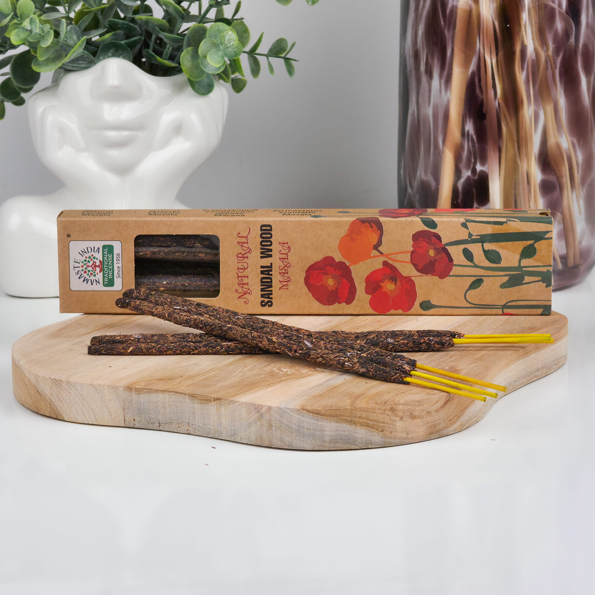 Każdy patyczek jest tworzony ręcznie – zgodnie z indyjską tradycją przekazywaną od pokoleń. Wykonany z naturalnych składników roślinnych, bez sztucznych dodatków, stanowi czyste połączenie natury i rzemieślniczej precyzji.