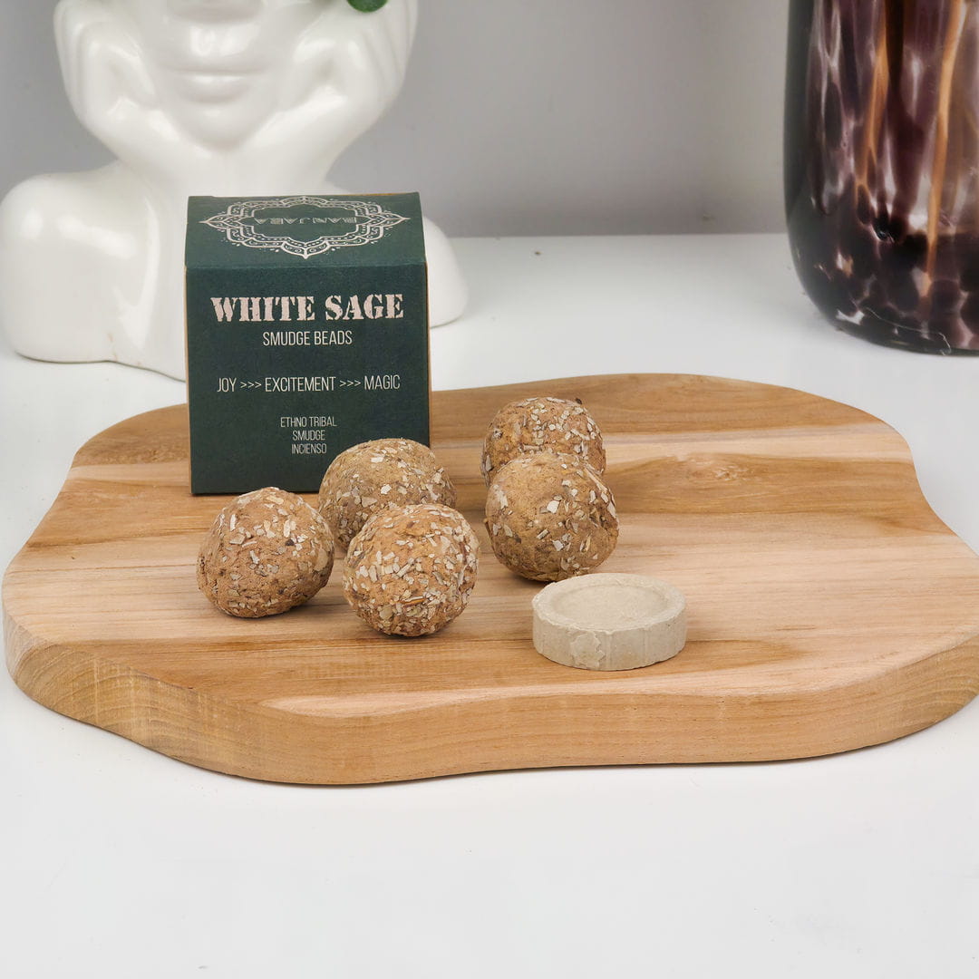Kadzidło w kulkach Banjara – Biała Szałwia • 5 kulek + ceramiczna podstawka