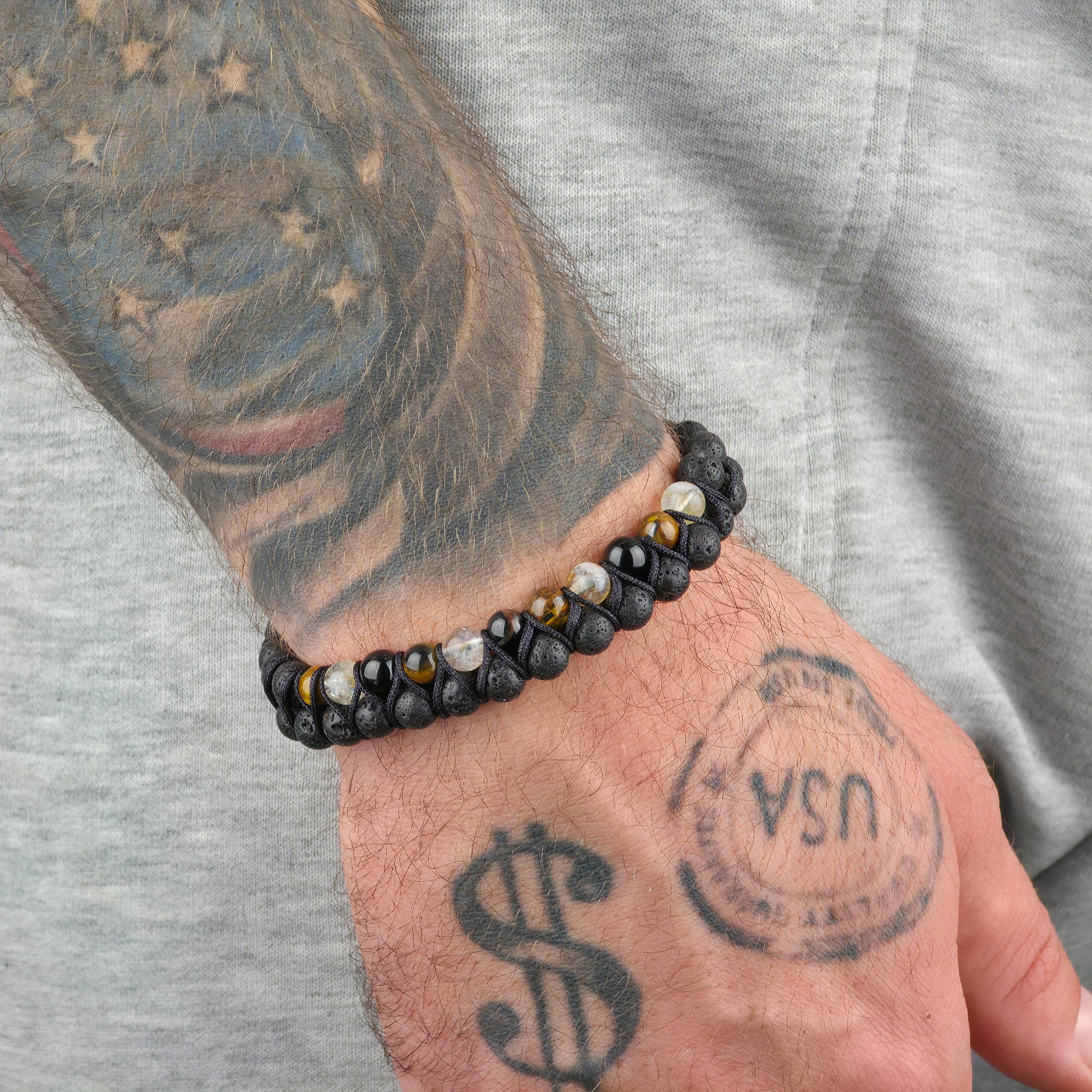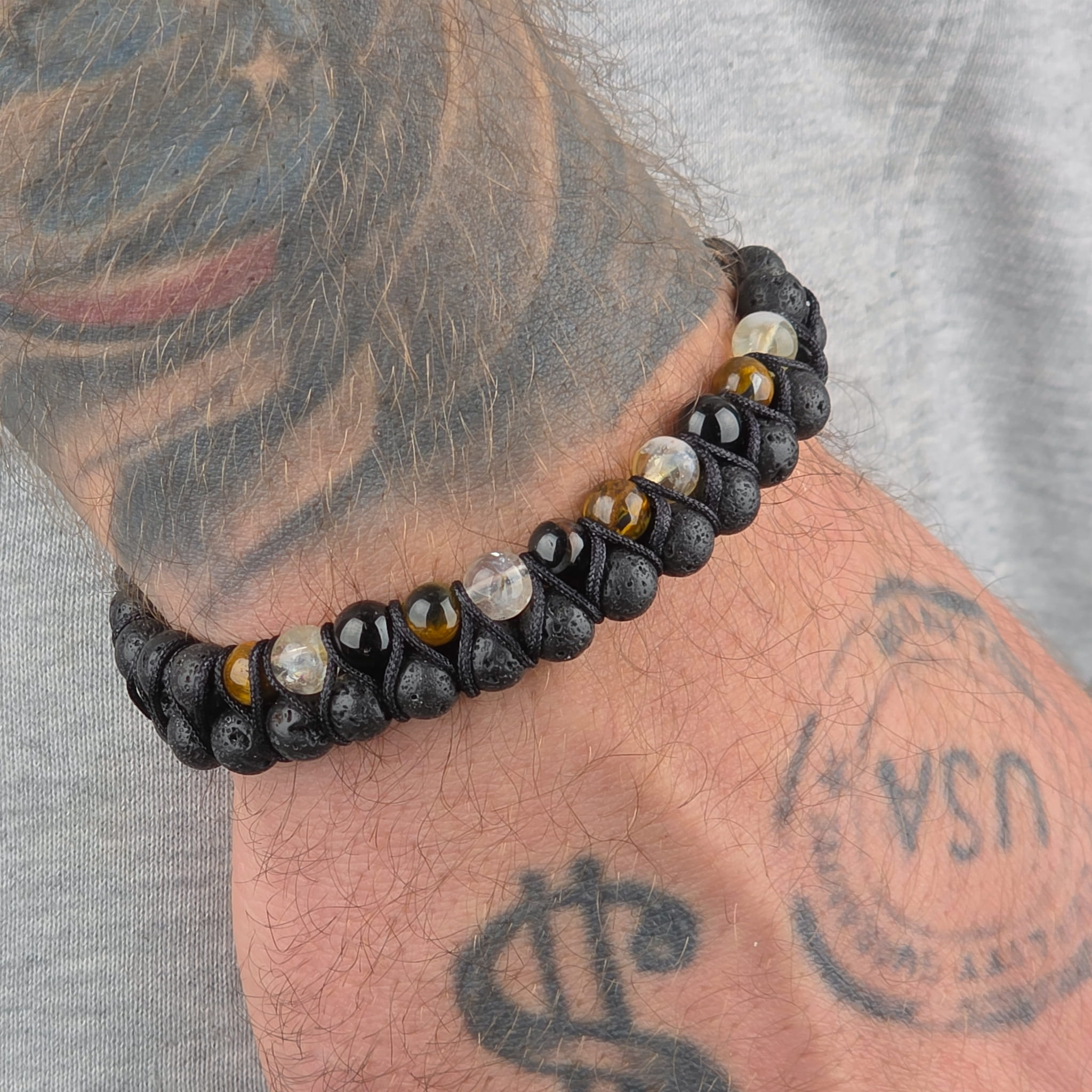 Bransoletka "Podwójna ochrona" – Tygrysie Oko, Turmalin, Cytryn & Lawa