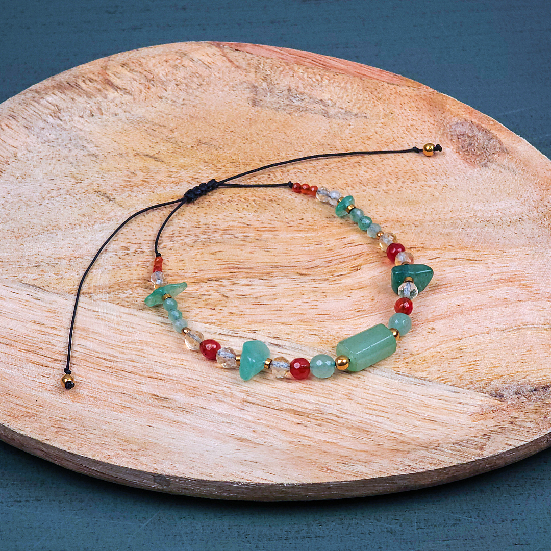 Ręcznie tworzona, z dbałością o energię każdego kamienia. Regulowany sznurek.