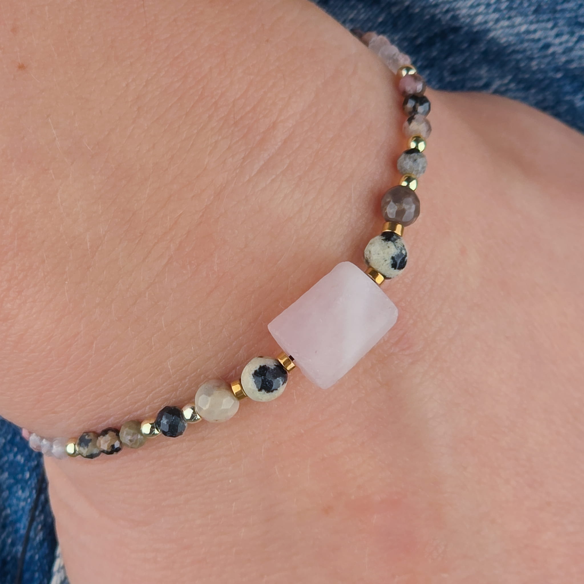 Ta wersja zawiera więcej kamieni, przez co działa intensywniej i głębiej na poziomie emocjonalnym. Idealna, gdy chcesz otulić się aurą otwartości i lekkości, lub przygotowujesz się na nowy etap w relacjach.