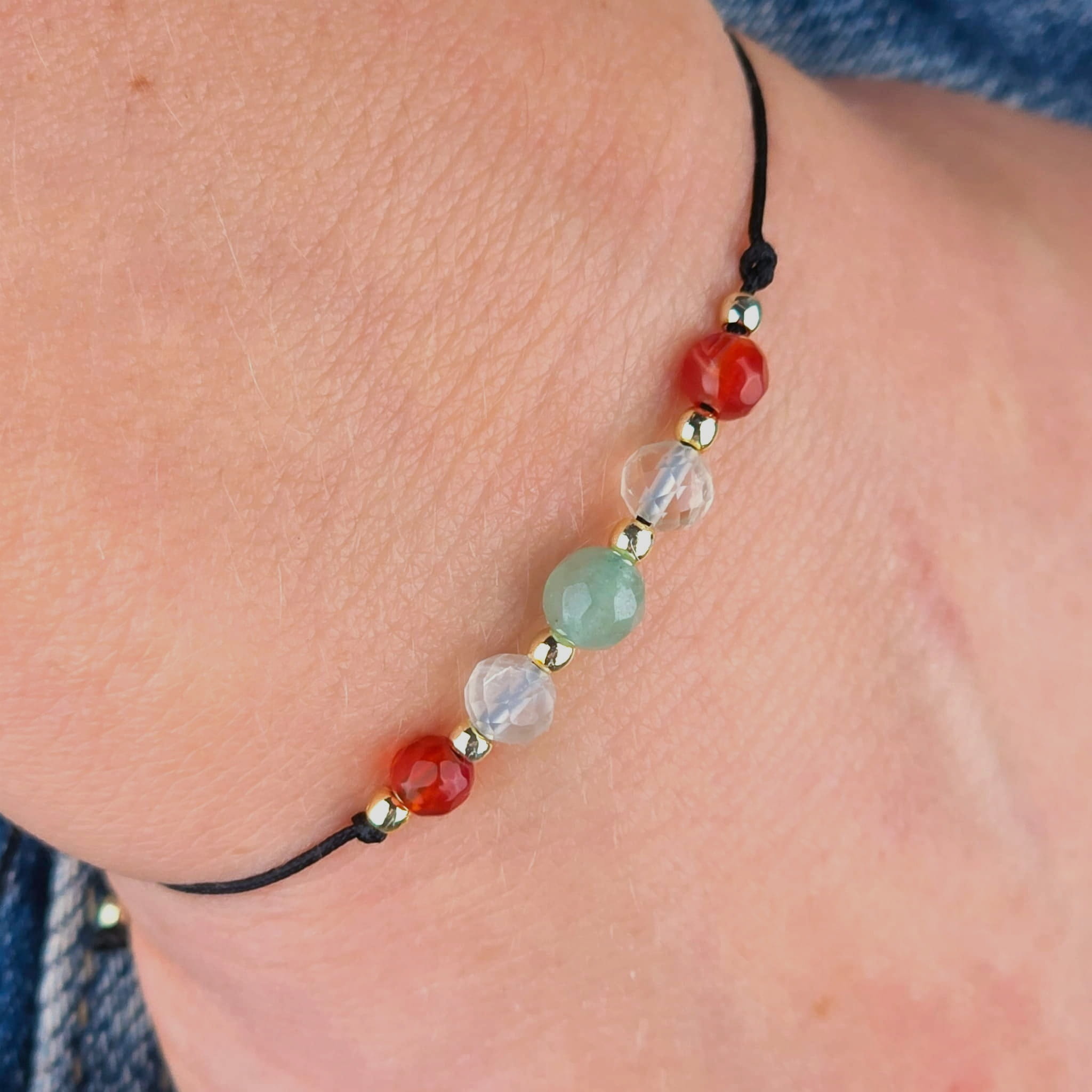 Dokładamy wszelkich starań, aby kolory widoczne na ekranie jak najwierniej oddawały rzeczywisty wygląd naszych rytualnych produktów. Należy jednak pamiętać, że kamienie, z których tworzymy nasze bransoletki i pierścionki, są w pełni naturalne – każdy z nich posiada unikalną strukturę, barwę i energetyczną wibrację.
