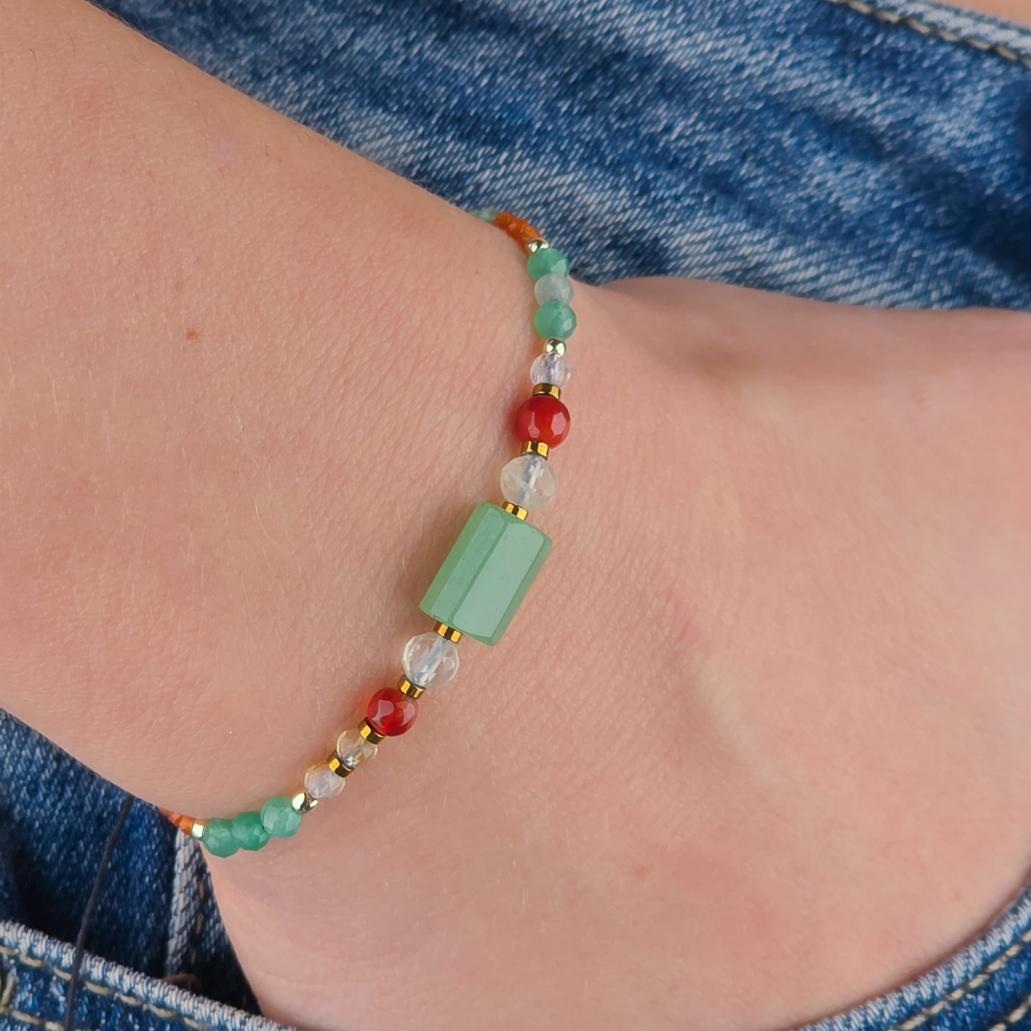 „Brama Obfitości” to bransoletka dla tych, którzy chcą otworzyć się na więcej – więcej radości, więcej szczęścia, więcej życia. Zawiera większą ilość kamieni, co sprawia, że działa intensywniej i szerzej – jak energetyczna brama, przez którą wpływa do Ciebie dobro.
