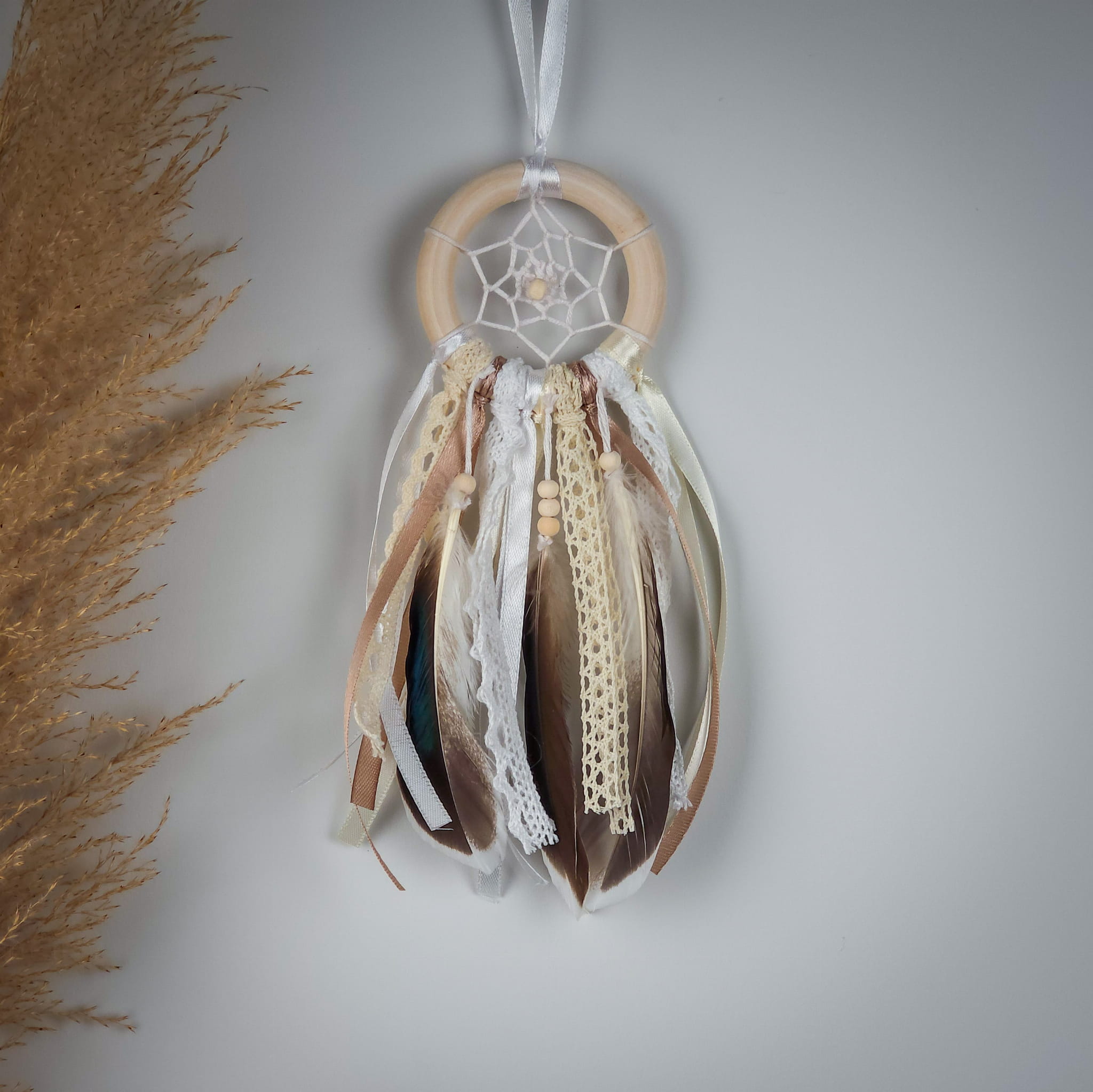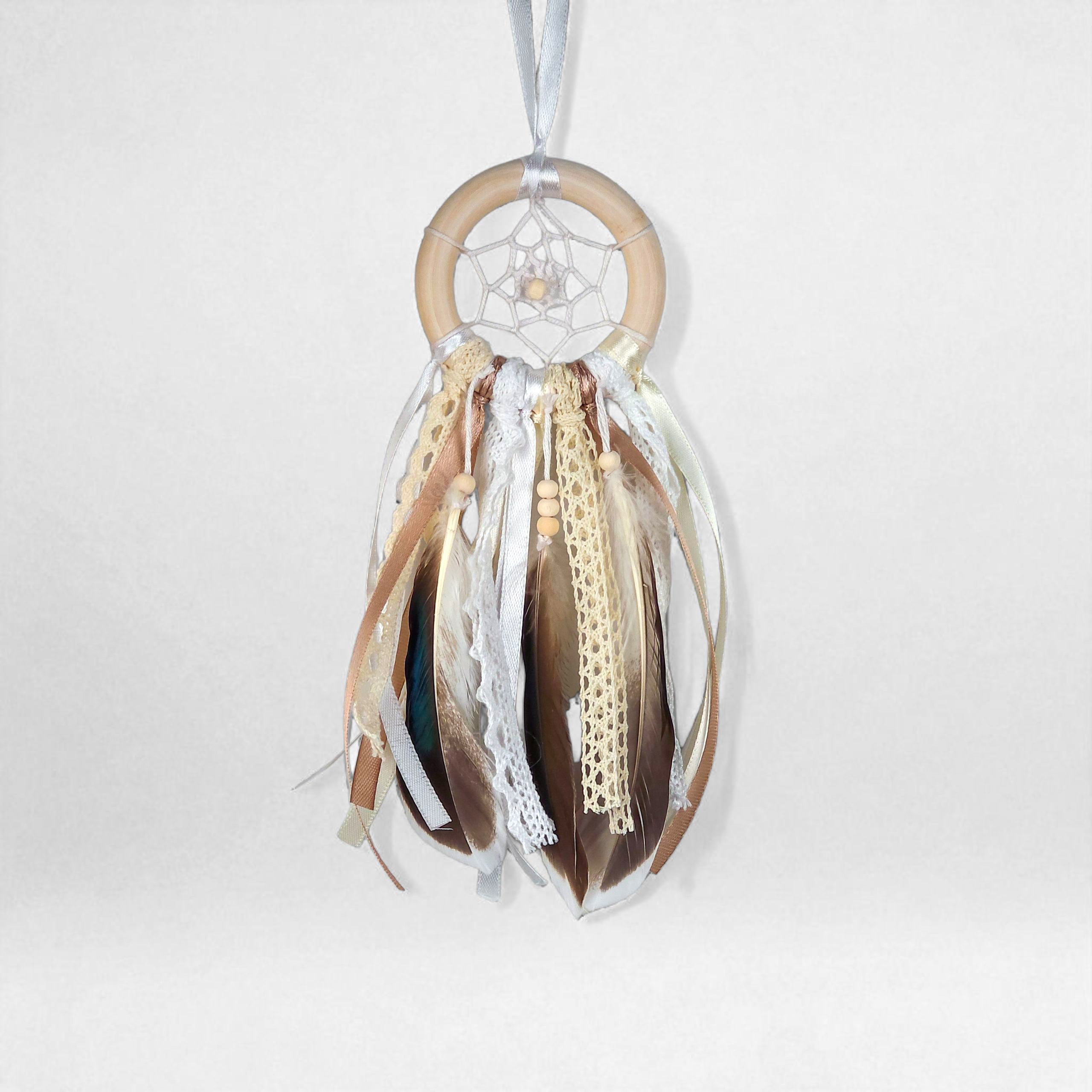 Ręcznie wykonany mini łapacz snów, stworzony techniką makramy z naturalnych nici i drewnianej obręczy. Mimo niewielkich rozmiarów to silny talizman energetyczny – oczyszcza przestrzeń z negatywnych wpływów, wspiera wyciszenie umysłu i sprzyja głębokiemu relaksowi. Idealny do małych pomieszczeń, nad łóżko, do samochodu lub jako subtelna rytualna ozdoba.
