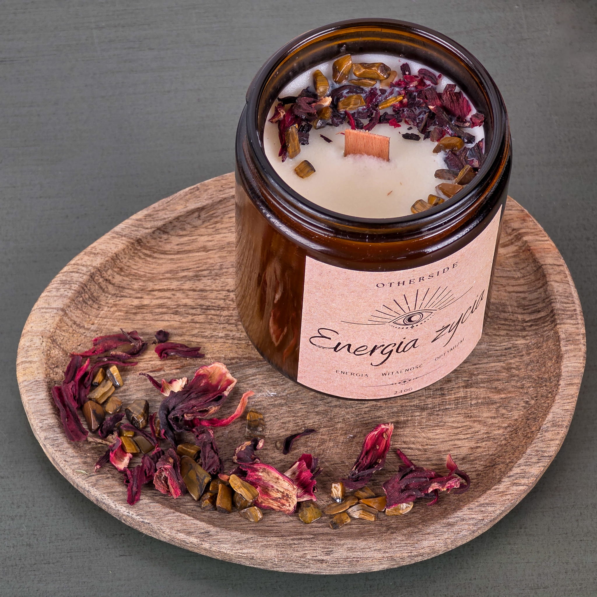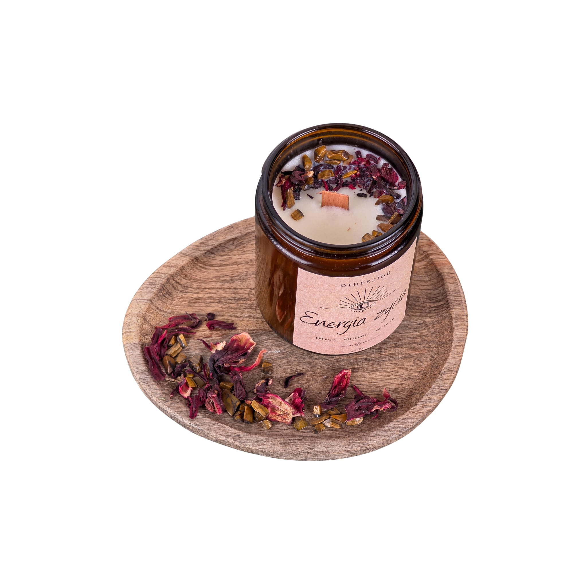 Naturalna Świeca Sojowa Energia Życia | Świeża Bawełna + Tygrysie Oko + Hibiskus | Witalność | 240g