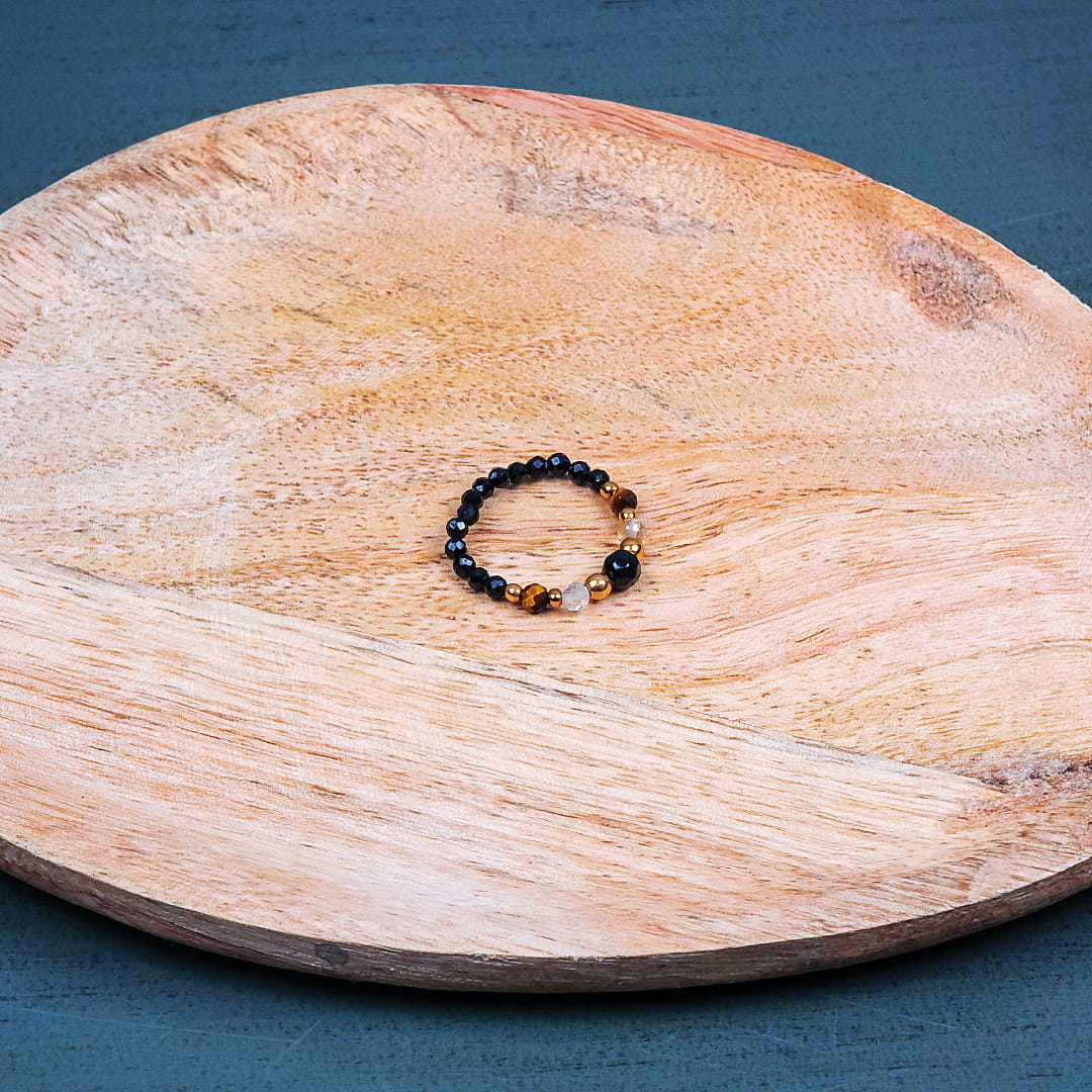 Ten pierścionek to dyskretny, ale wyrazisty amulet ochronny. Noszony na dłoni, działa jak osobisty strażnik – wspiera Cię w zachowaniu granic, odpiera wpływy zewnętrzne i stabilizuje Twoje pole energetyczne.