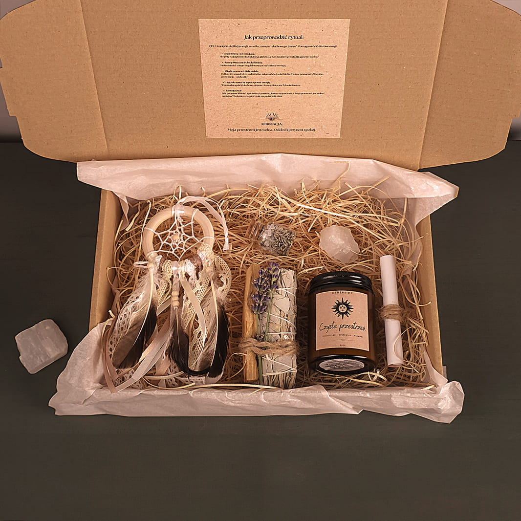 „Czysta Przestrzeń” to starannie skomponowany zestaw rytualny, który wspiera głębokie oczyszczenie Twojej przestrzeni — fizycznej i energetycznej. Idealny do przeprowadzenia rytuału po trudnych doświadczeniach, przeprowadzce, energetycznym zastoju lub gdy po prostu czujesz, że czas zrobić miejsce na nowe.