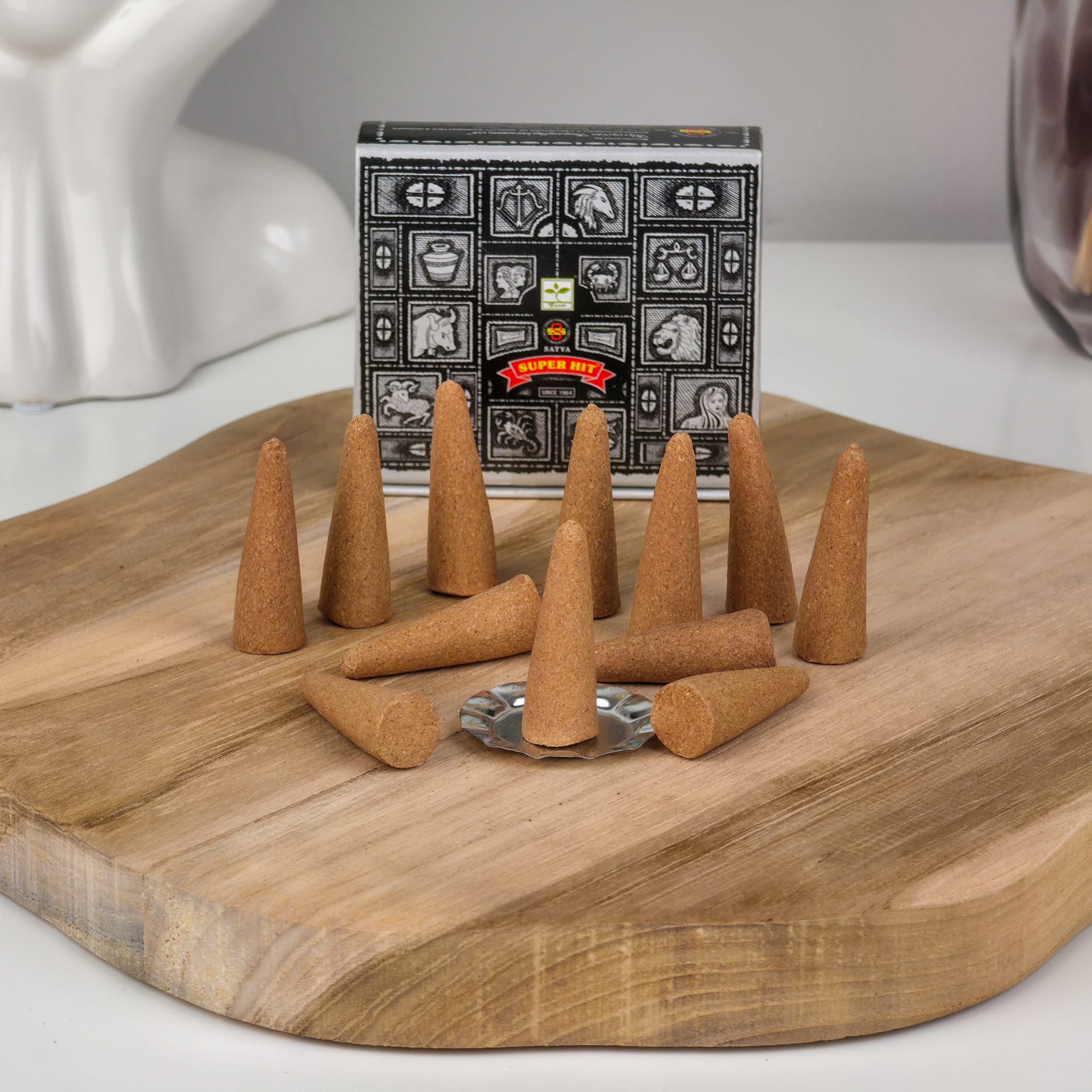 Każdy stożek powstaje ręcznie w Indiach, według tradycyjnych receptur, które od pokoleń są przekazywane w Bangalore – światowej stolicy najlepszych kadzideł. Dzięki naturalnym składnikom i unikalnej strukturze masy, kadzidełka Satya tli się równomiernie, wydobywając swój aromat przez około 30 minut.