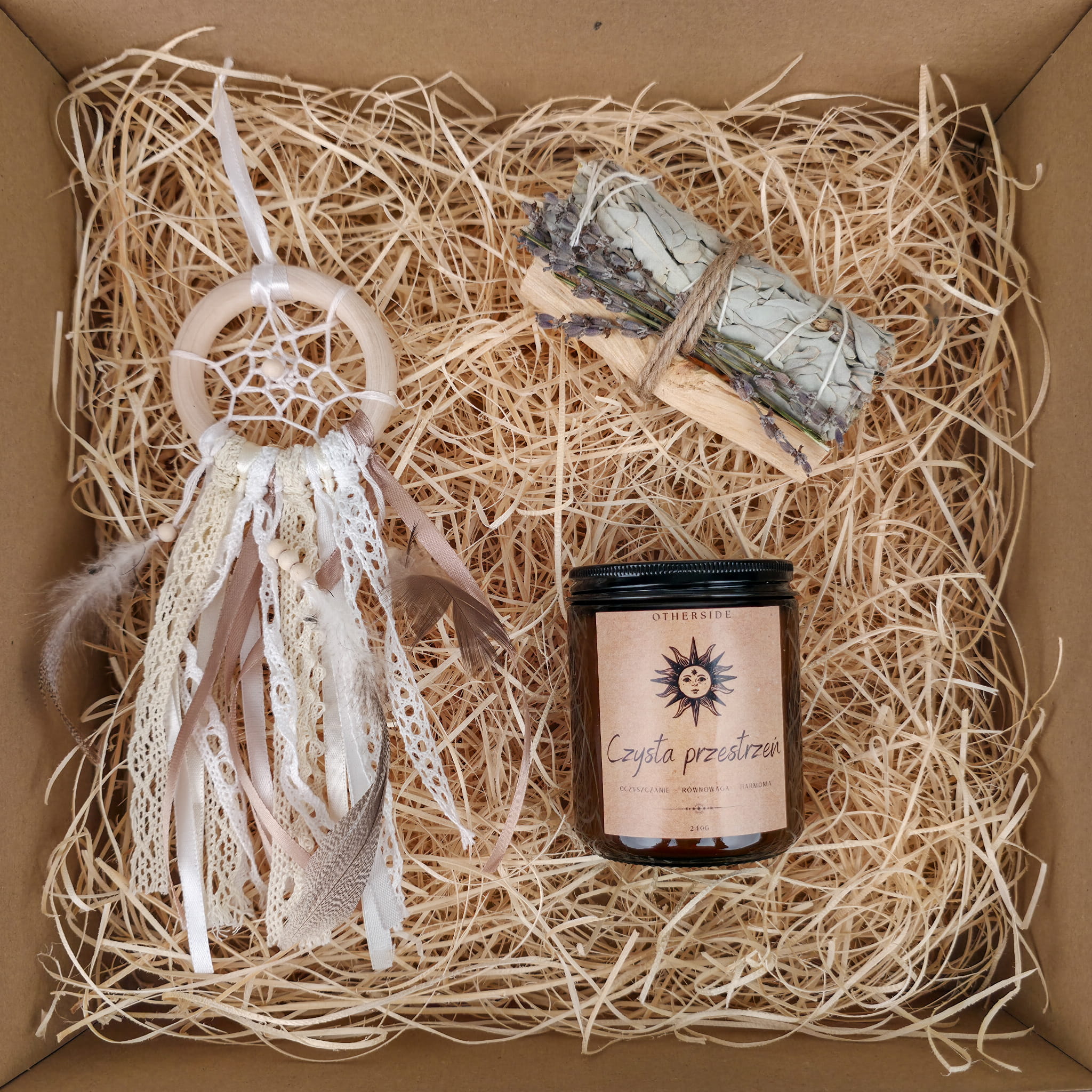 Zapal świecę i pozwól jej zapachowi wypełnić przestrzeń. Podpal pęczek i okadź wybrane miejsce. Zawieś łapacz tam, gdzie chcesz zbudować strefę wyciszenia i ochrony.